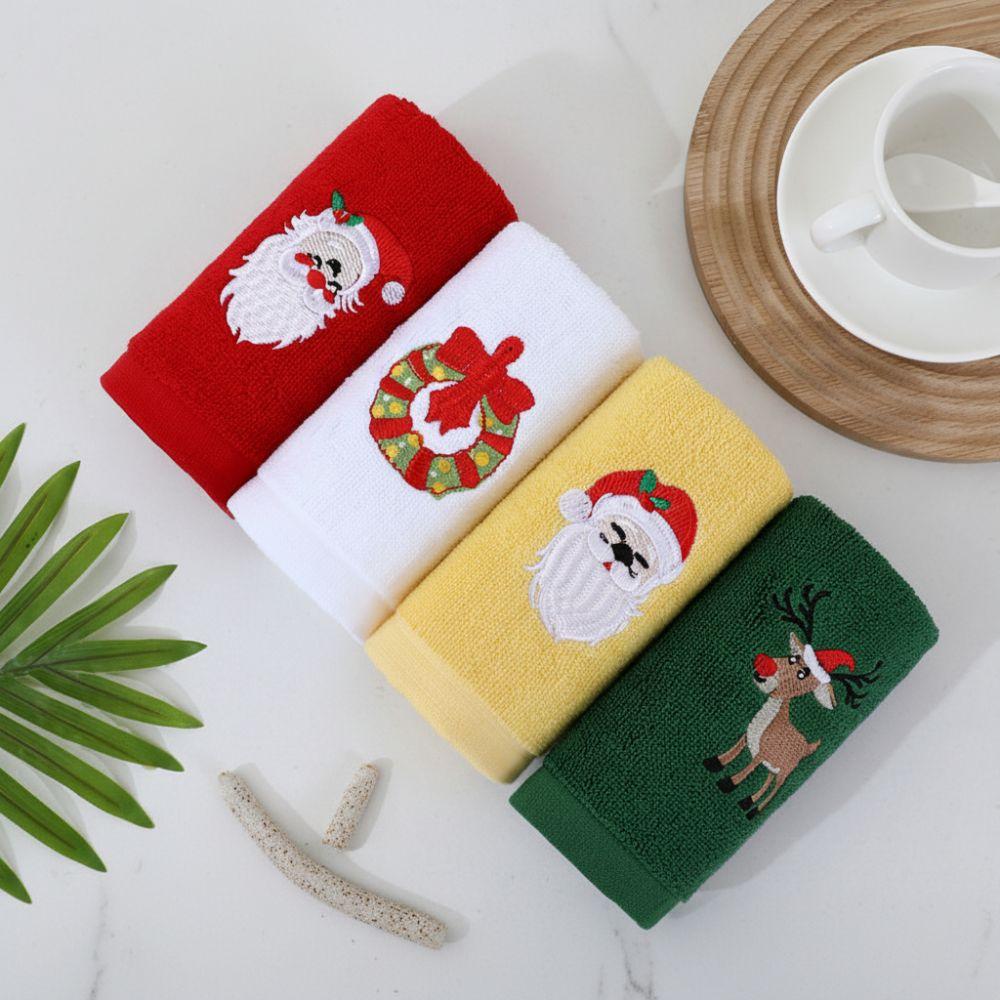 3/4Pcs Quick Dry Merry Christmas Kitchen Towels Soft Cotton Embroidered Christmas Themed Towel Absorbent Santa/Elk