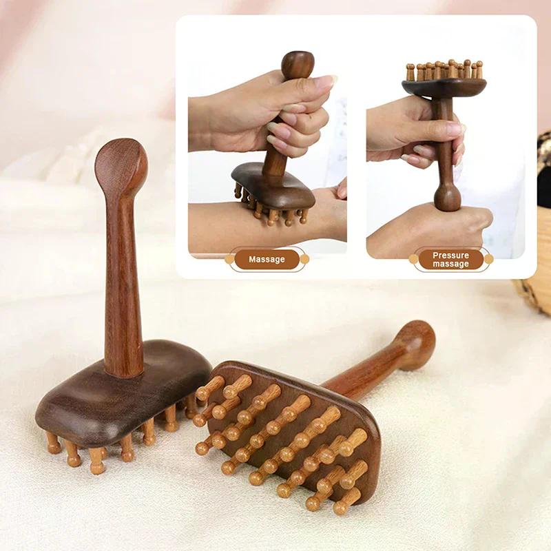 Portable Sandalwood Gua Sha Massage Brush Head Neck Abdominal Leg Body Meridian Massager Wooden Therapy Massage Tools