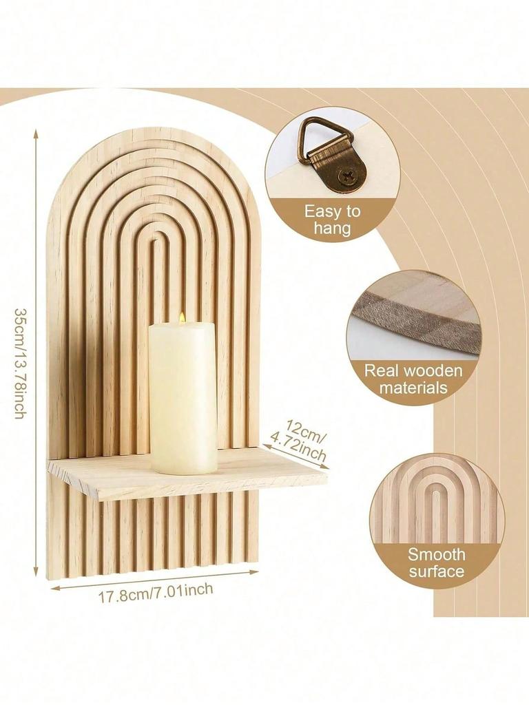 1/2pcs Wooden Wall-Mounted Decor Shelf, Bohemian Wall-Mounted Bookshelf, Boho Style Display Rack, Candle Holder For Living Room