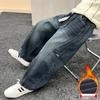 2025 Boys' Plush-Lined Denim Fleece Pants - Winter Wear for Teens and Kids