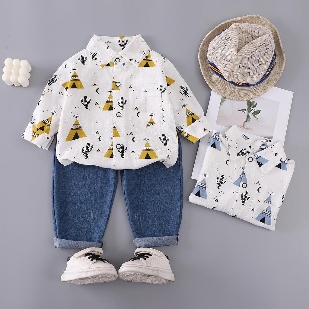 This adorable two-piece set is perfect for boys who love a fun and comfortable style. The long sleeve top features a playful cactus print, adding a touch of whimsy to any outfit. Made from soft cotton material, it ensures all-day comfort and breathability. Paired with casual jeans, this set offers a relaxed yet stylish look, ideal for everyday wear or a casual outing.