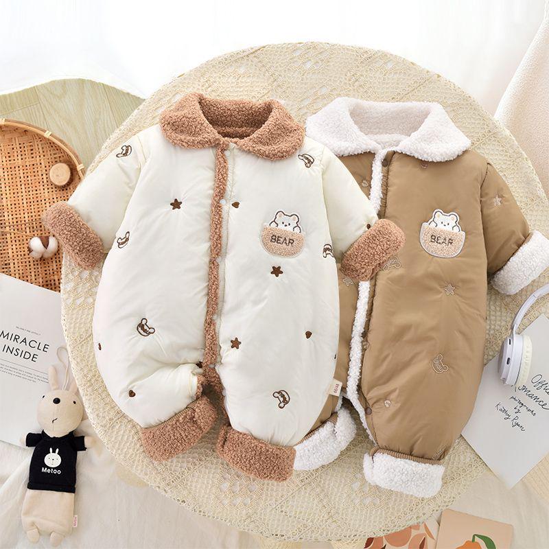 Cartoon Bear Fleece Baby Bodysuit - Warm Winter Outdoor Wear for Newborns