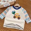 This playful and stylish long-sleeve T-shirt is crafted from soft, comfortable cotton, making it perfect for all-day wear. Featuring a fun cartoon design with raglan stripes, this shirt offers a delightful mix of vibrant colors and playful patterns. The round neck base layer ensures a snug fit, while the high-quality material keeps kids cozy and comfortable. Ideal for active boys, this T-shirt is a versatile addition to any wardrobe, suitable for both casual outings and playtime adventures.