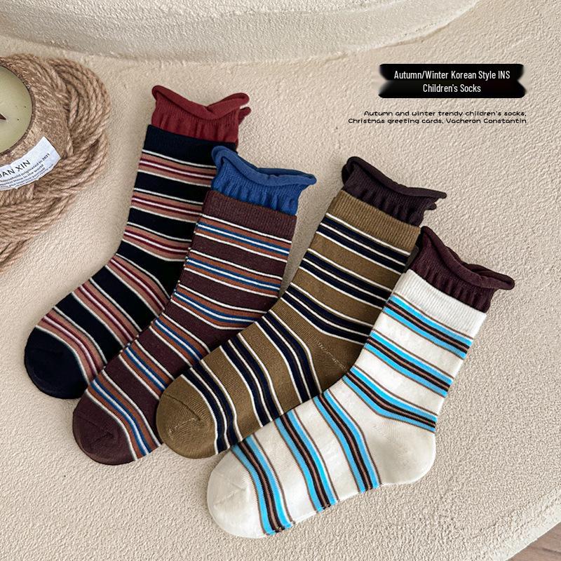 Meilade Autumn 2025 Striped Double Ribbed Socks for Women & Kids - 4 Pack