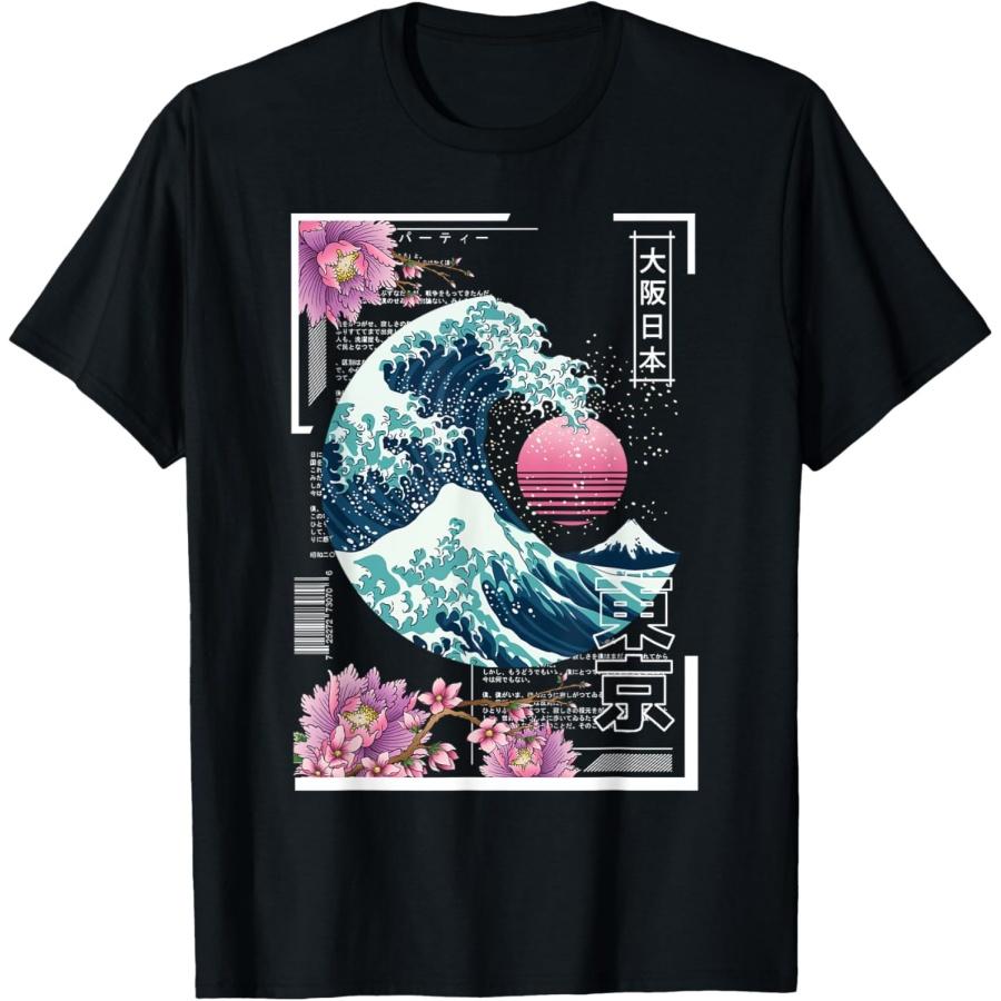 Vaporwave Synthwave 80's Japan Japanese Great Wave Tokyo 80s T-Shirt