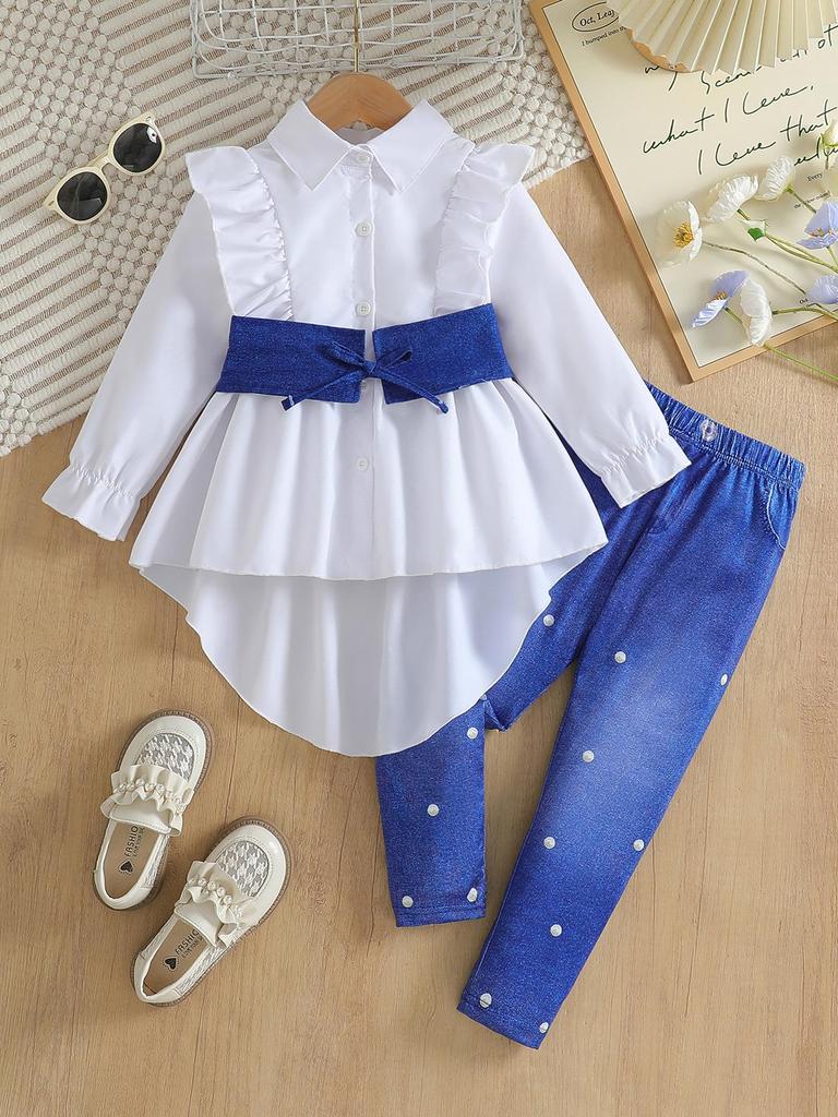 Autumn 2025 Girls' Long Shirt Dress and Pants Set with Belt