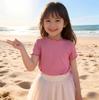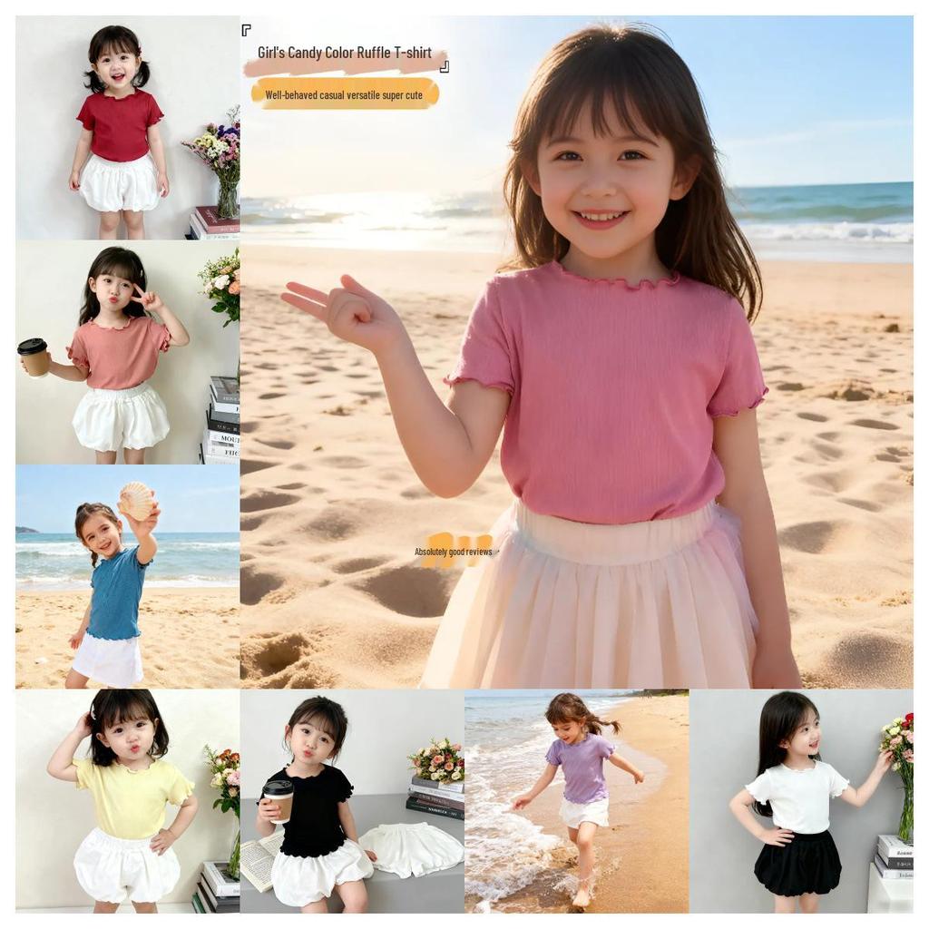 This adorable toddler top is perfect for summer, featuring a charming Korean style with a striped design and ruffle trim. Made from soft artificial silk material, it offers a comfortable and lightweight fit for little ones. The sweet candy color and short sleeves add a playful touch, making it an ideal choice for warm weather outings and casual occasions.