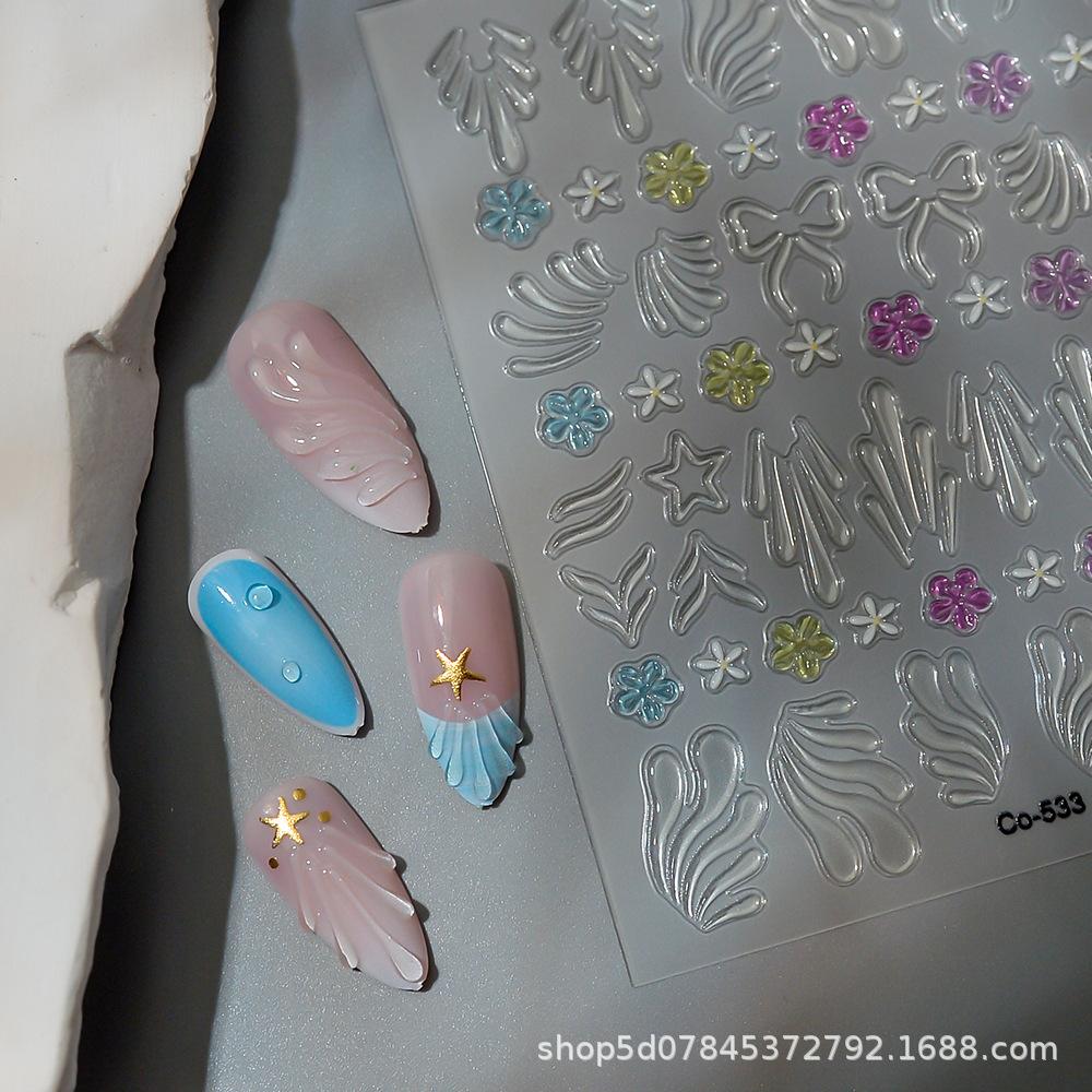 3D Shell Pattern French Manicure Jelly Bow Nail Stickers - Sweet & Spicy Girl Style