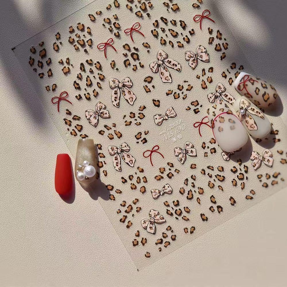 Hot Girl Leopard Print Bowknot Nail Art Stickers - Pink & Sweet Adhesive for Cool Styles