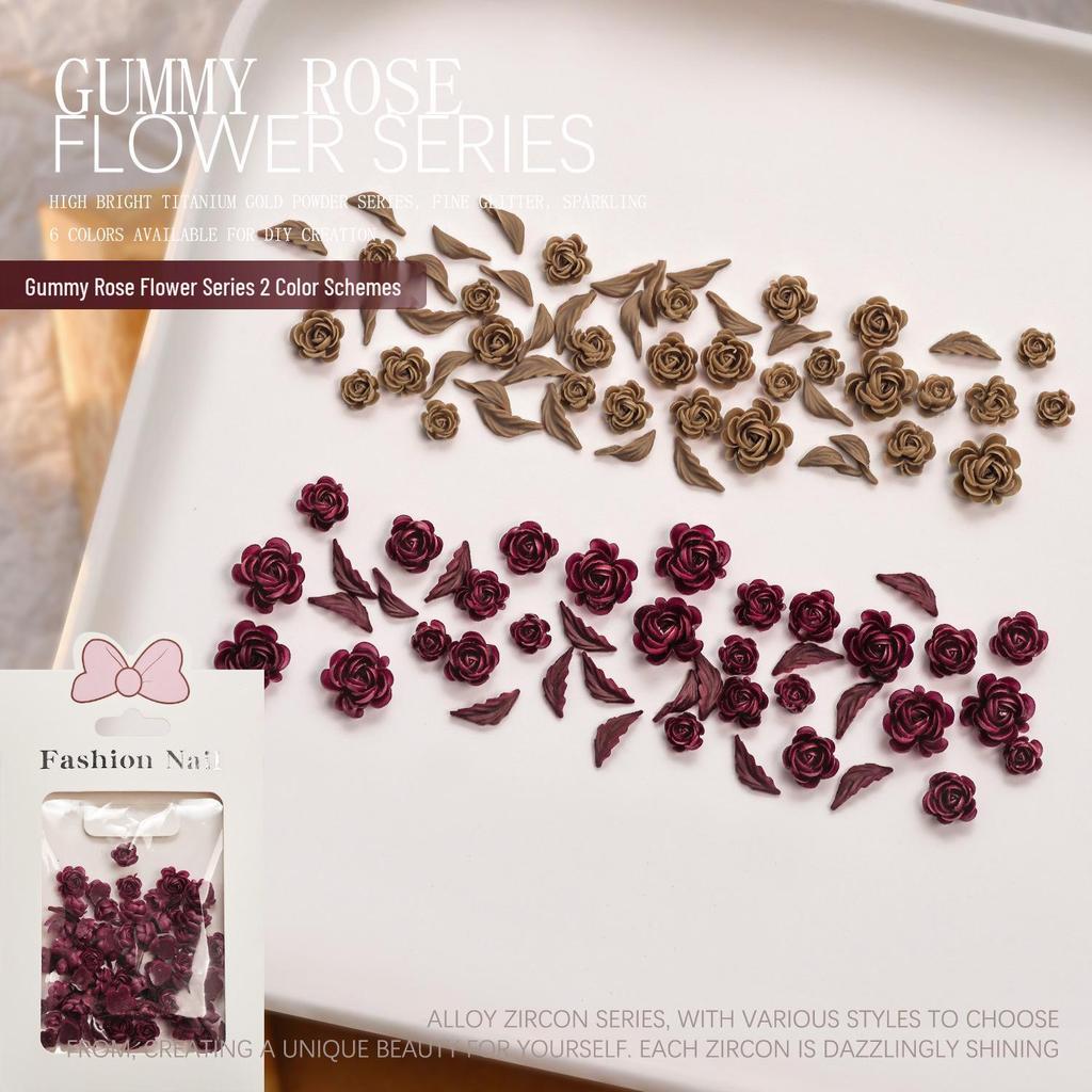 Crimson Rose 3D Nail Art Accessories - DIY Press-on Flower & Leaf Design