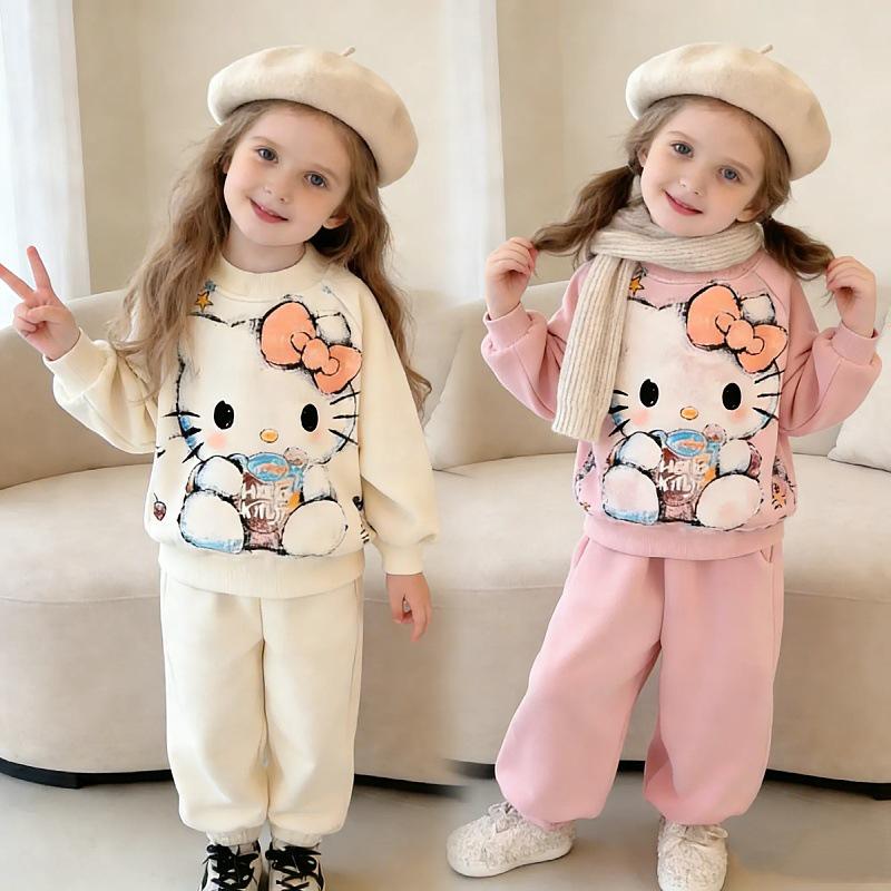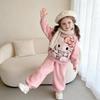2026 Stylish Girls' Fleece-Lined Hoodie & Jogger Set - Winter Warm Cartoon Design