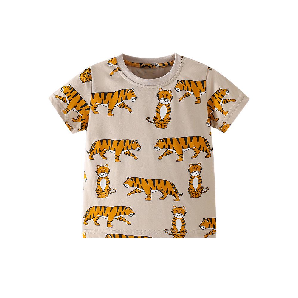 Get your little one ready for the warm season with this stylish and comfortable kids' short-sleeve T-shirt. Featuring a vibrant tiger print, this casual fashion top is perfect for playdates, outings, or any casual occasion. The round neck design offers a classic look, while the soft cotton material ensures breathability and comfort for all-day wear. Ideal for adding a playful touch to any child's wardrobe.