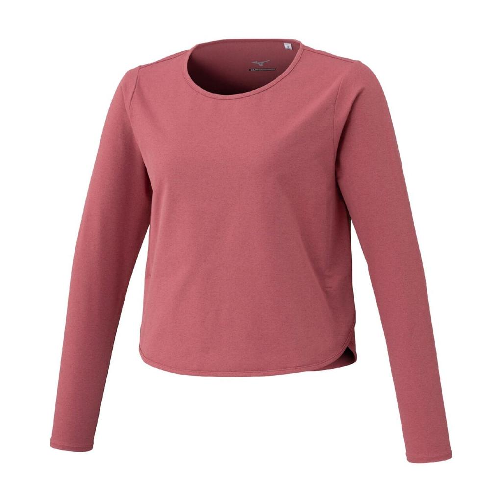 Mizuno Soft Dry Cropped Mauve 32MAC875 Women's T-Shirt (Long Sleeve), Moisture-Wicking, Quick-Drying, Pink,