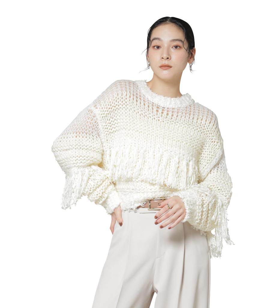 ■Material ・Washable material suitable for hand washing ・A carefully crafted knit made using three types of yarn (1) Soft and fluffy mohair mix yarn Using multiple strands of fine, delicate and soft mohair mix yarn, it has a soft and airy texture. It is gentle on the skin, and the entire knit has an elegant transparency and a soft impression. (2) Voluminous roving yarn The thick and fluffy roving yarn adds a three-dimensional effect and presence. A loosely knit wool blend that is warm and provides a relaxed feel. (3) Fancy yarn with a fluffy texture A special fancy yarn with a tape-like yarn and fringe that creates an attractive, uneven texture. By incorporating it in parts, it creates a dynamic and expressive design.