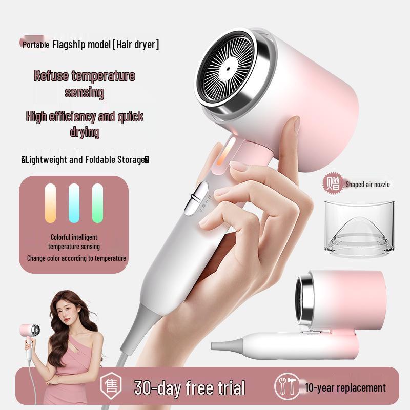 Compact High-Power Hair Dryer: Foldable, Portable, Quick-Dry with Temperature Control