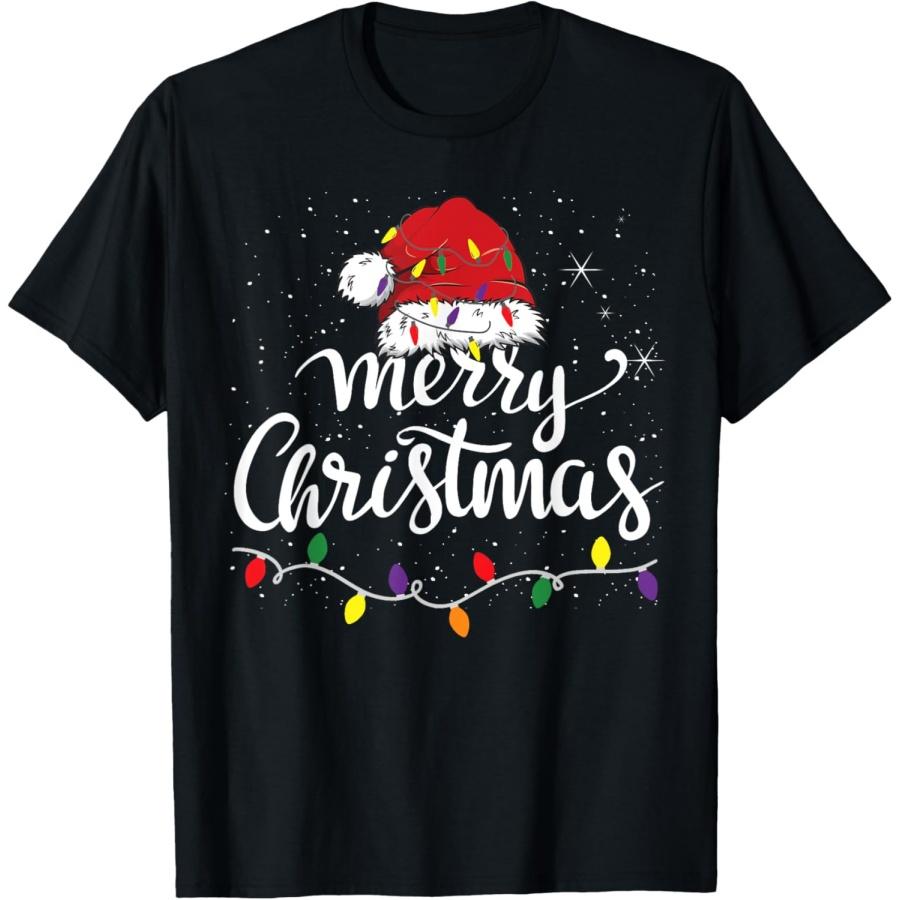 Merry Christmas Lights Red Santa Hat Xmas Family Men Women T-Shirt