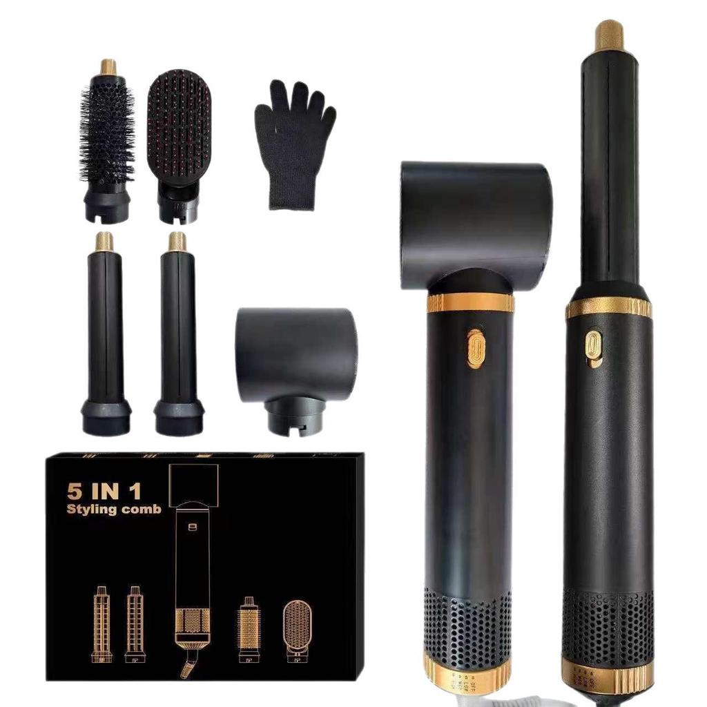 5-in-1 Hot Air Brush Set: Automatic Curler, Straightener, Multifunctional Hair Dryer with Replaceable Heads