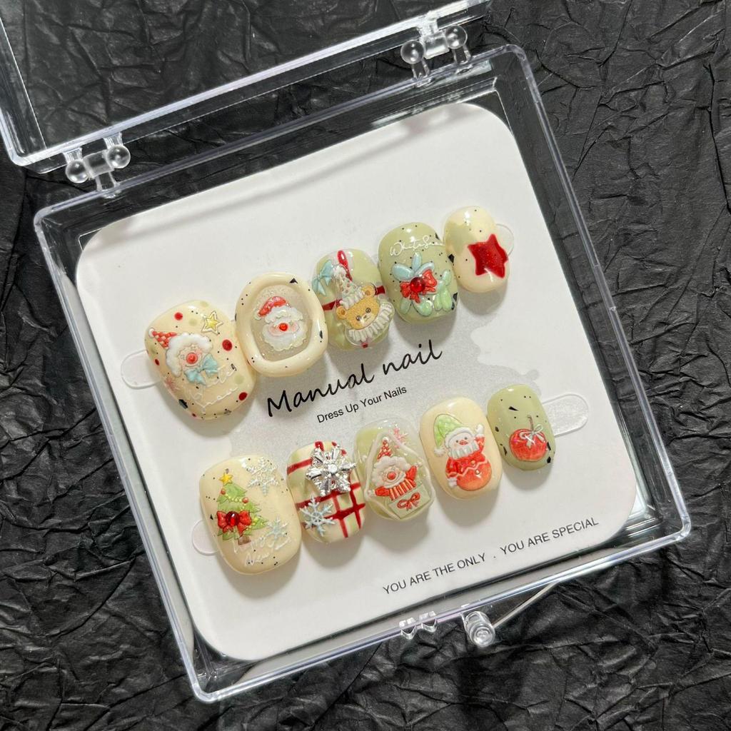 Add a festive touch to your nails with these adorable manicure stickers. Designed with playful, Christmas-themed cartoon girl illustrations, these stickers are perfect for short and round nails. They are easy to apply, comfortable to wear, and can be effortlessly removed when you're ready for a new look. Perfect for adding a hint of holiday cheer to your everyday style.