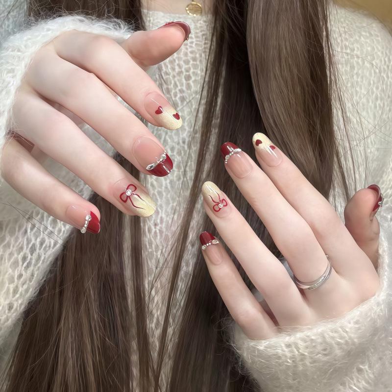 Cat Eye Bowknot Whitening Nails: Wearable, Detachable, Student-Friendly, Semi-Handmade Manicure.