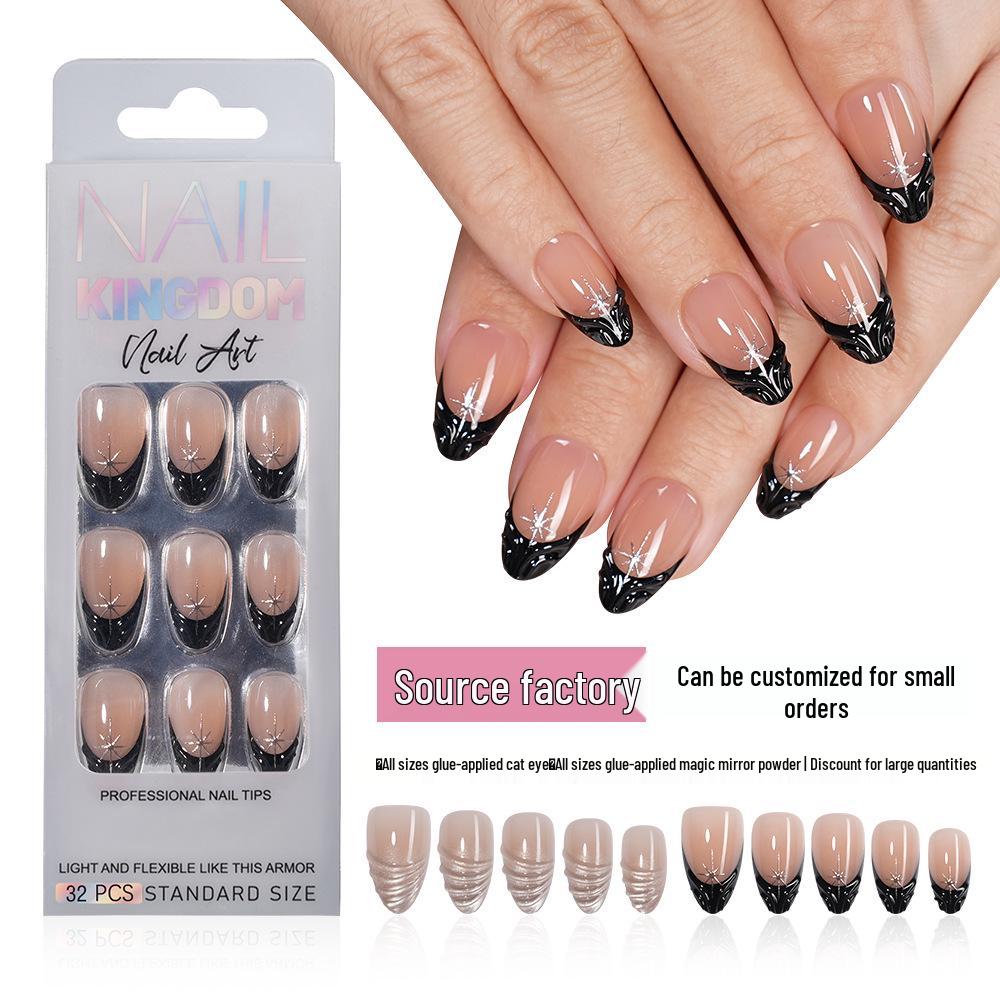 Elegant French Style Cat Eye False Nails with Magic Mirror Powder - Glue-On Nail Art Tips