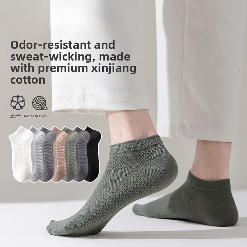 Men's Spring/Summer Lightweight Short Socks with Mesh Ventilation - Boat Style - Sporty Men's Socks - Boat Style Pure Cotton Socks for Men
