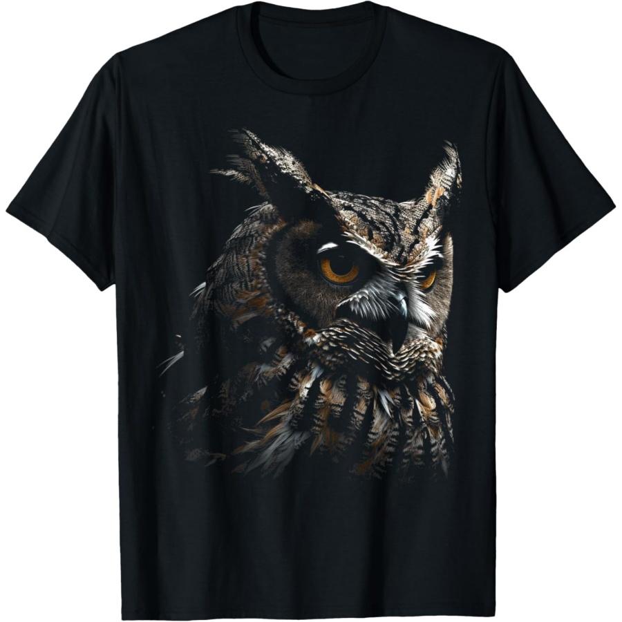 Owl Portrait Artwork _ Animal Motif Owl T-Shirt