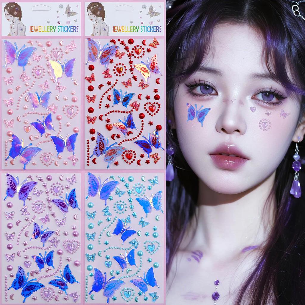 New Style Butterfly & Pearl Face Stickers for Kids - Self-Adhesive Makeup & Decorations