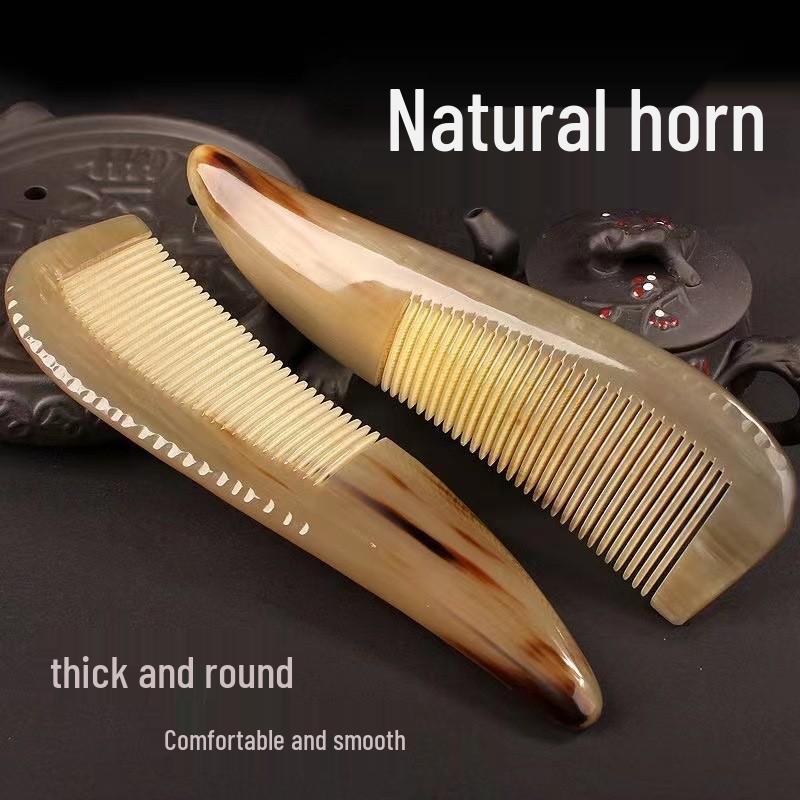 Natural Yak Horn Comb for Long, Curly, Thick Hair - Anti-Static, Anti-Hair Loss, Large Wooden Massage Comb