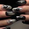 Almond Rhinestone Gold Foil Nails: Glossy 3D Metal Resin, Cool Manicure Set - 30 Pieces
