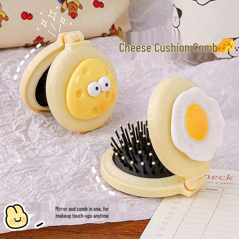 Compact Cute Air Cushion Comb & Mirror for Portable Head Massage