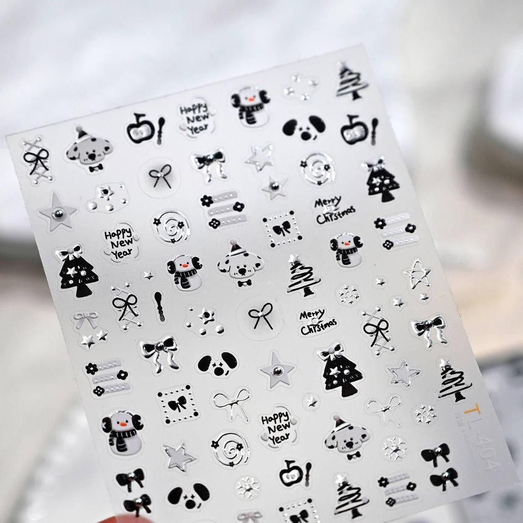Christmas Puppy & Snowman Nail Art Stickers - Waterproof, Cute Style with Silver Pearl, Ideal for DIY Manicures