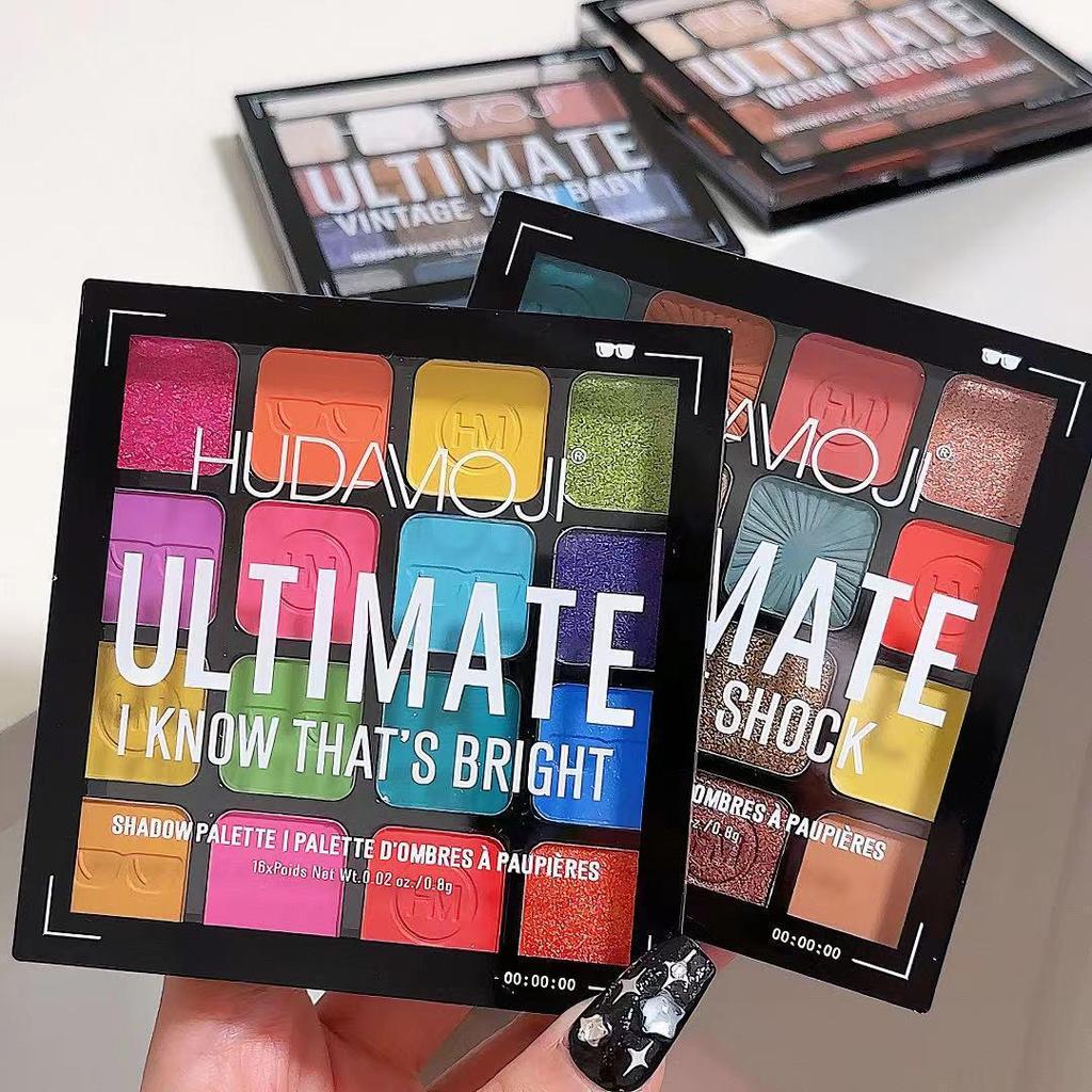 HUDAMOJI 16-Color Eyeshadow Palette: Vibrant Pearlescent, Matte Earth Tones & Glitter for Stage Makeup.