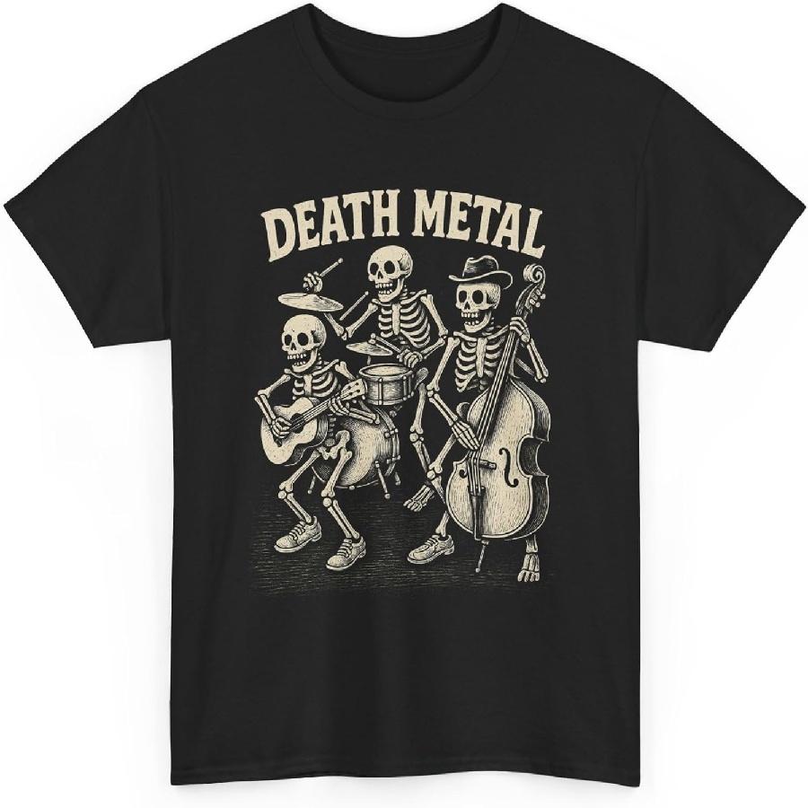 Death Metal Skeleton Band T-Shirt Rockabilly Psychobilly Funny Music Graphic Tee for Horror Music Fans