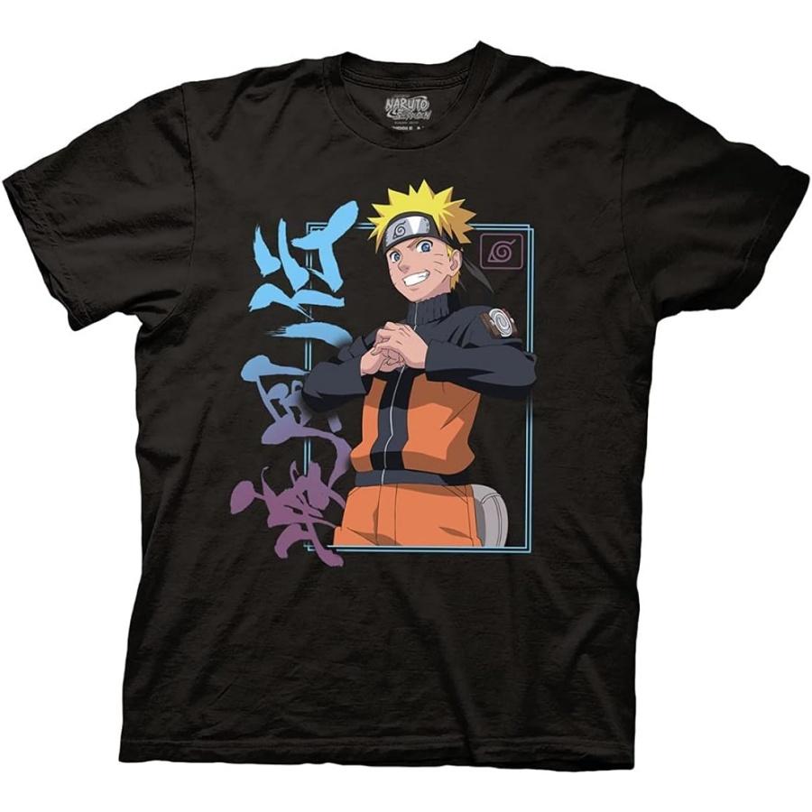 RIPPLEJUNCTION Ripple Junction Naruto_ Shippuden Adult Unisex Naruto Kanji Frame Light Weight 100% Cotton Crew T-Shirt X-Large Black