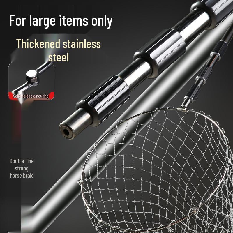 Telescopic Stainless Steel Fishing Rod with Foldable Net Head and Fish Bag Grapnel Set