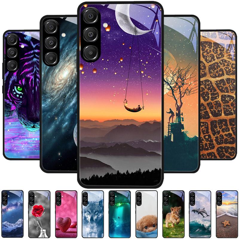 Fashion Coque For Samsung A55 A56 Case A25 A26 Tempered Glass Phone Cover For Galaxy A15 A35 A36 Hard PC Glass Protective Fundas