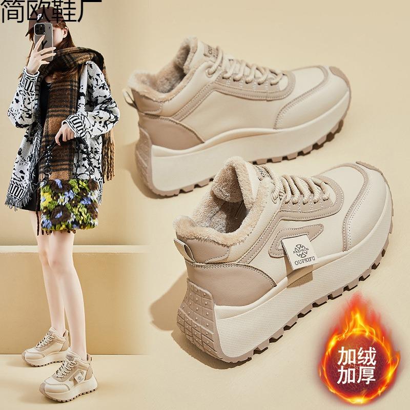 New Velvet Dad Shoes Women's 2 Winter Student Sports Thick-soled Warm Casual Board Shoes