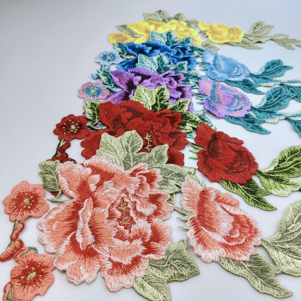 Fashion Elegant Colorful Embroidery Lace Flower Applique 3D Flower DIY Peony Flower Patch Embroidery Patches DIY Clothing