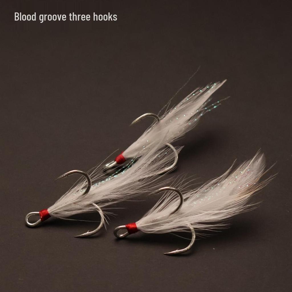 Enhanced Fishing Lure with 6x Reinforced Blood Groove, Feathered Treble Hook, and Barbed Three-Claw Design