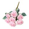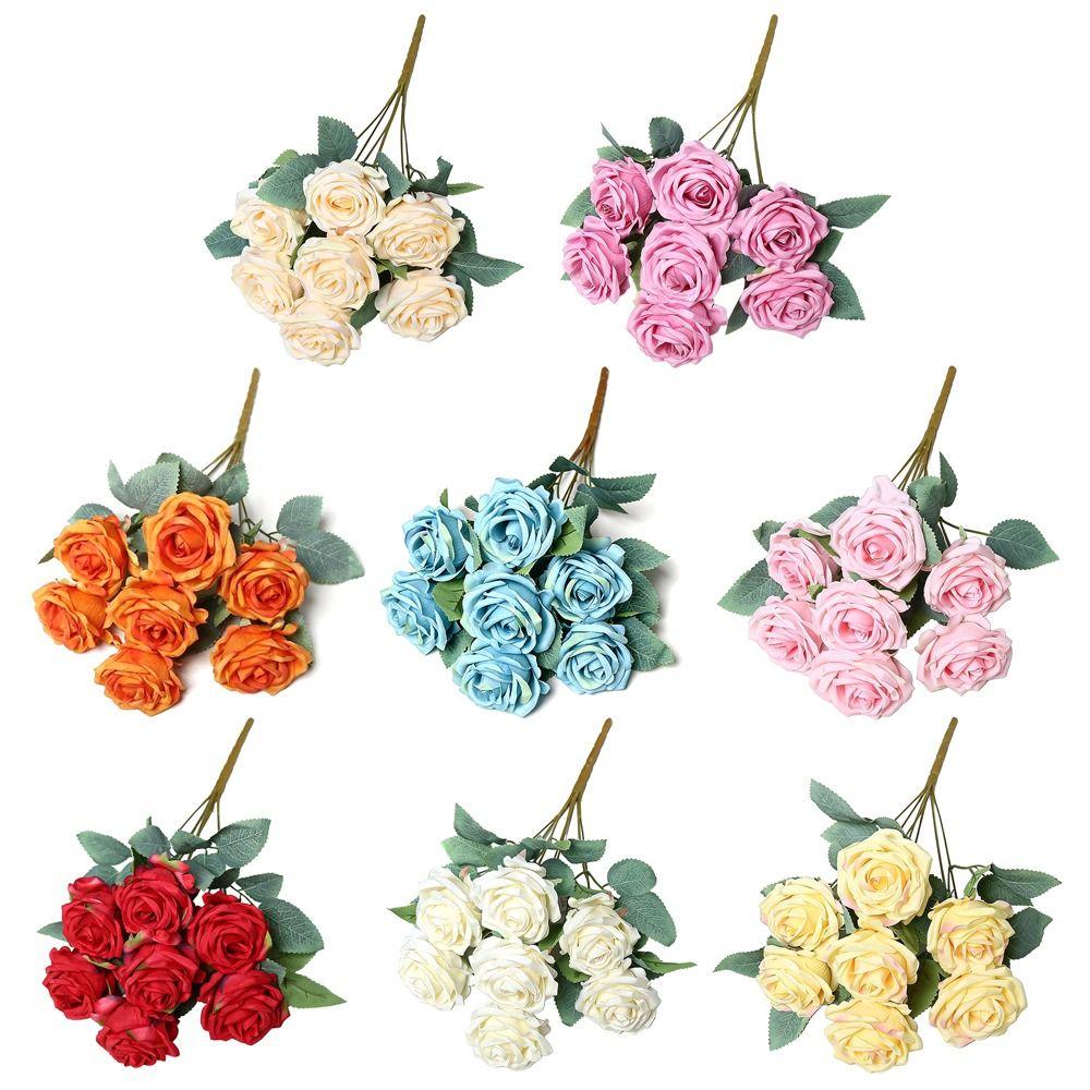 7 Heads Rose Artificial Flower Multicolor Green Leaves Faux Flower Photo Props Rolled Edge Simulation Rose Flower