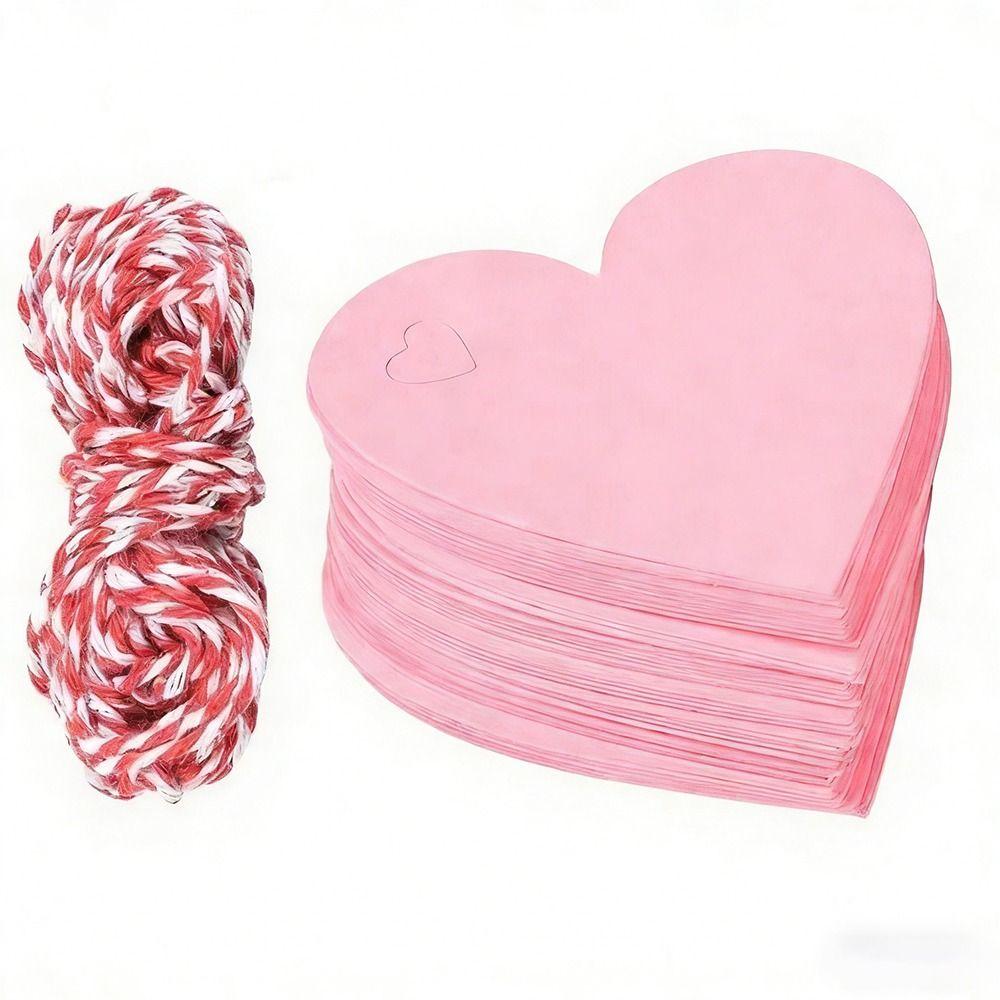 100pcs DIY Valentine's Day Tags Heart Shape Blank Hanging Decoration Heart Shaped Cards Red Pink Paper Gift Labels