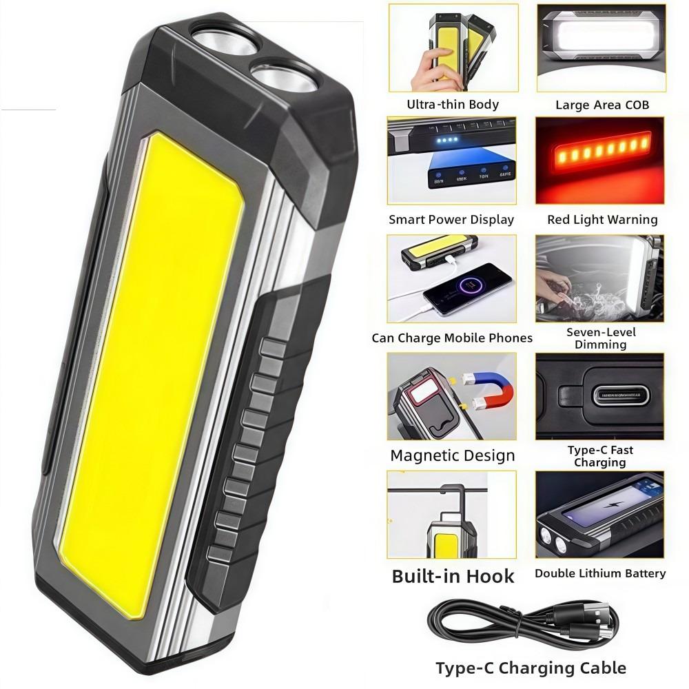 LED Magnetic Flashlight 2×18650 Waterproof COB Work Light 4000mAh Strong Light Camping Torch Light Outdoor Night Lighting