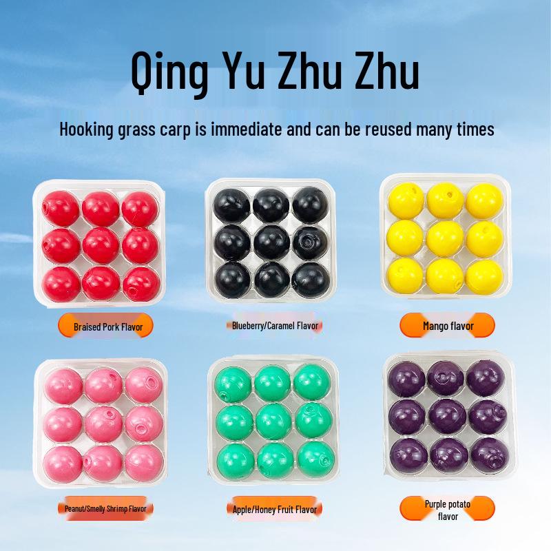 Black Pit Special 16mm Slow Sinking Soft Fishing Lure: Blueberry, Mango, Purple Sweet Potato Flavors - 9 Beads Boxed