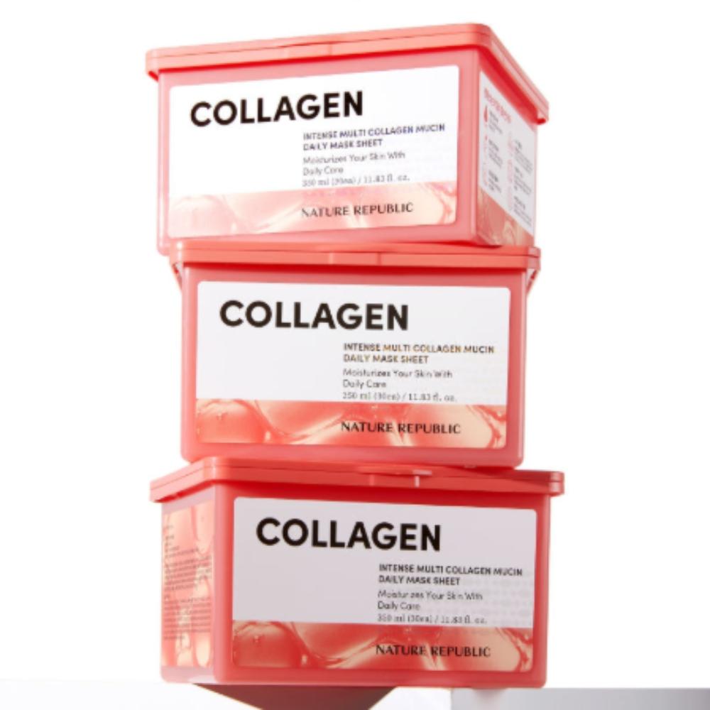 NATURE REPUBLIC Intense Multi Collagen Mucin Daily Mask Sheet 30 Sheets 350ml Pull-Out Type Skin Elasticity & Tightening 1 Day 1 Pack