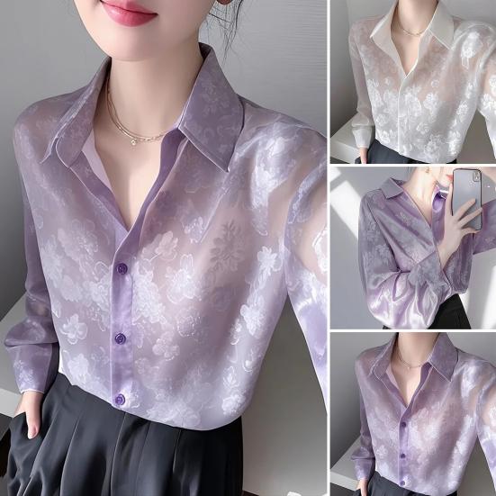 Versatile Polyester Material: Crafted from high-quality polyester, this women's shirt offers breathability and skin-friendly comfort. Its lightweight design ensures a pleasant wearing experience, while the subtle perspective effect adds a touch of elegance. Ideal for layering with a base shirt or suspender vest, this piece is a versatile addition to any wardrobe.