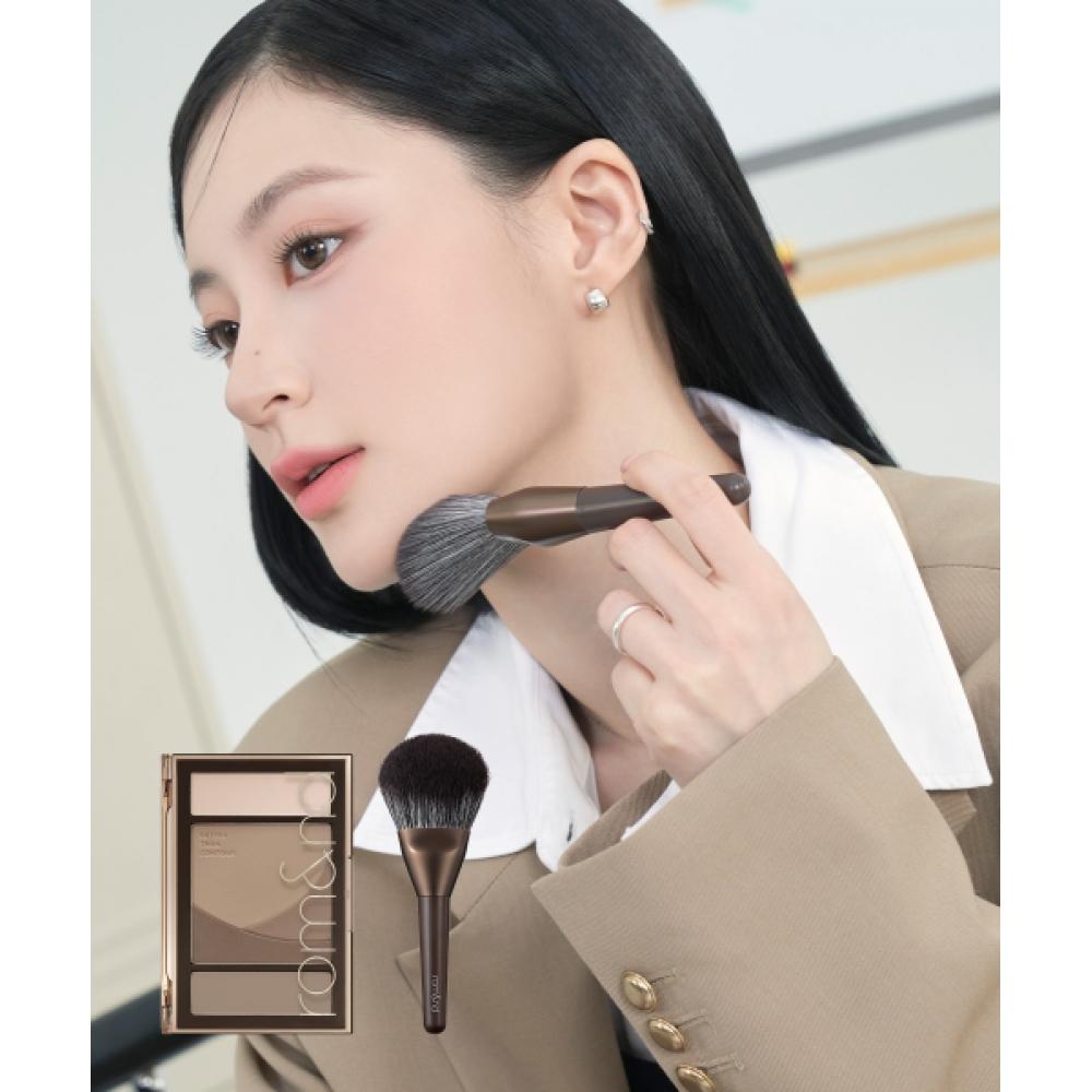 ROM&ND Better Than Contour + Jaw Brush is the perfect set for shading and contouring, featuring a contour powder and a jaw brush that specializes in jawline and nose shading. With a slim packaging that is easy to carry, the design showcases a simple ROM&ND logo on a dark brown base. Color options include Neutral Warm and Gray Cool, ensuring a match for any skin tone with a variety of alternatives available. This product offers a luxurious texture and smooth application, providing a finish that does not clump and applies effortlessly.
