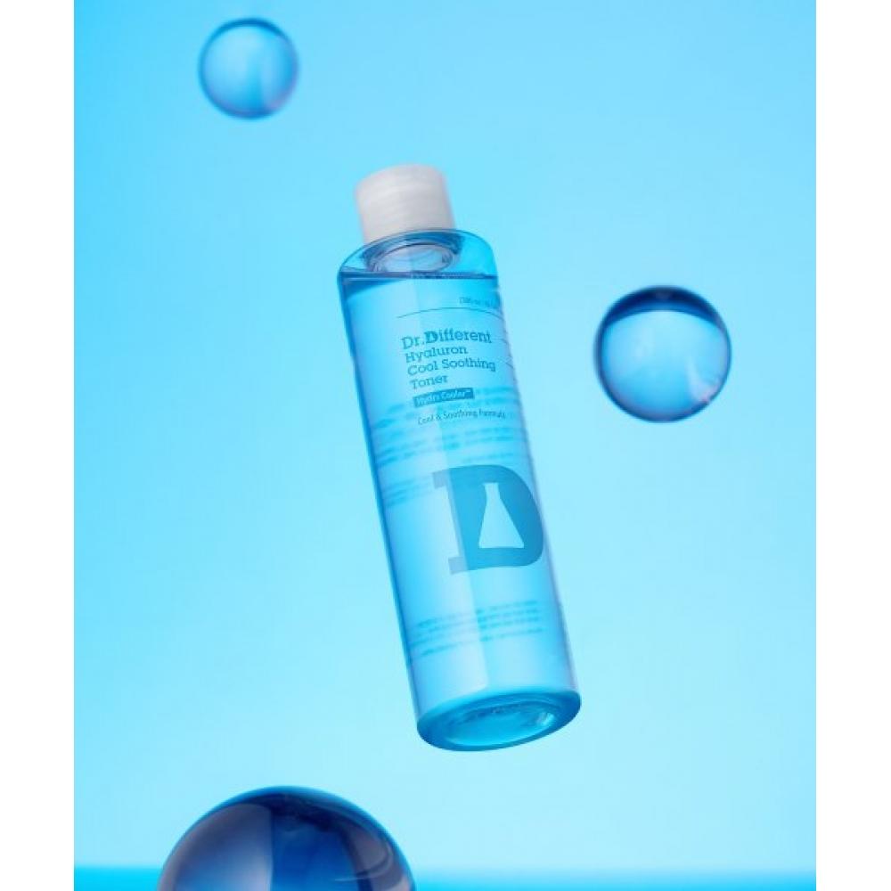 DR.DIFFERENT Hyaluron Cool Soothing Toner 300ml is a hydrating toner that provides immediate cooling and soothing effects. This product is designed for all skin types and features a liquid formulation that protects and hydrates the skin while delivering a refreshing sensation.
