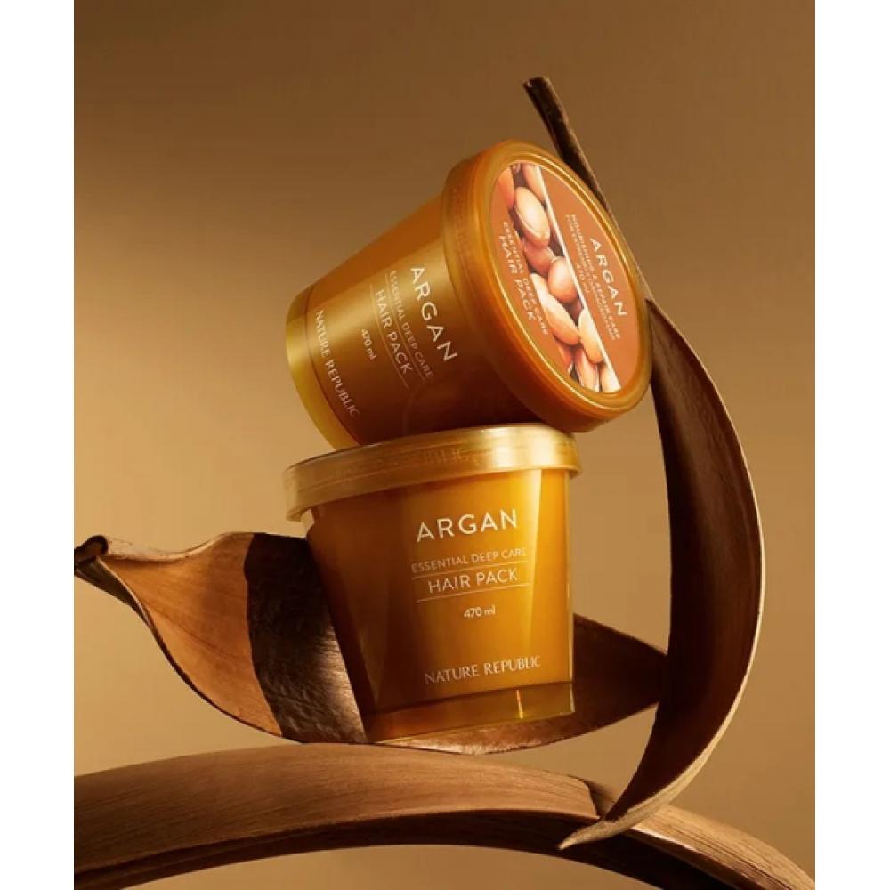 The NATURE REPUBLIC [2pack] Argan Essential Deep Care Hair Pack provides concentrated nutrition and moisture to damaged hair. With a non-greasy texture, this treatment delivers rich nutrients that give your hair shine and hydration. The formulation is thicker than a conditioner and can be applied smoothly like a cleansing balm; for optimal results, massage it into your hair and cover with a towel for about 5 minutes. With a neutral scent suitable for both men and women, this product is perfect for all hair types and helps with damage recovery and moisturizing.
