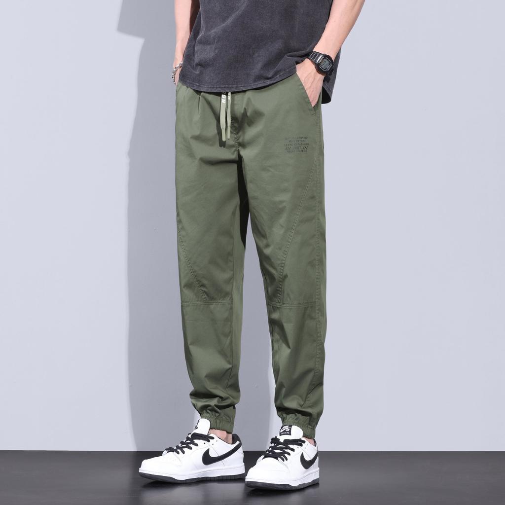 Spring Summer Style Elastic Waist Casual Pants for Men Stretch Straight Drawstring Harem Jogging Long Pants Male