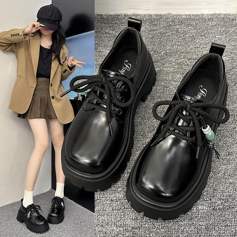 Thick-soled Women's Autumn New Black Small Leather Shoes Women's Height Increase Versatile Beaded Shoes